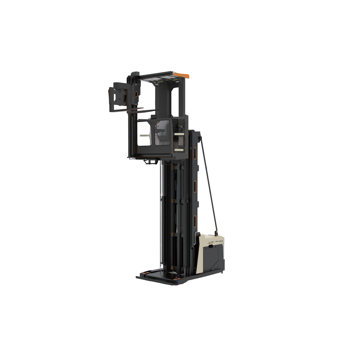 with the picking platform and access inventory directly at the storage level. Compared with conventional forklifts